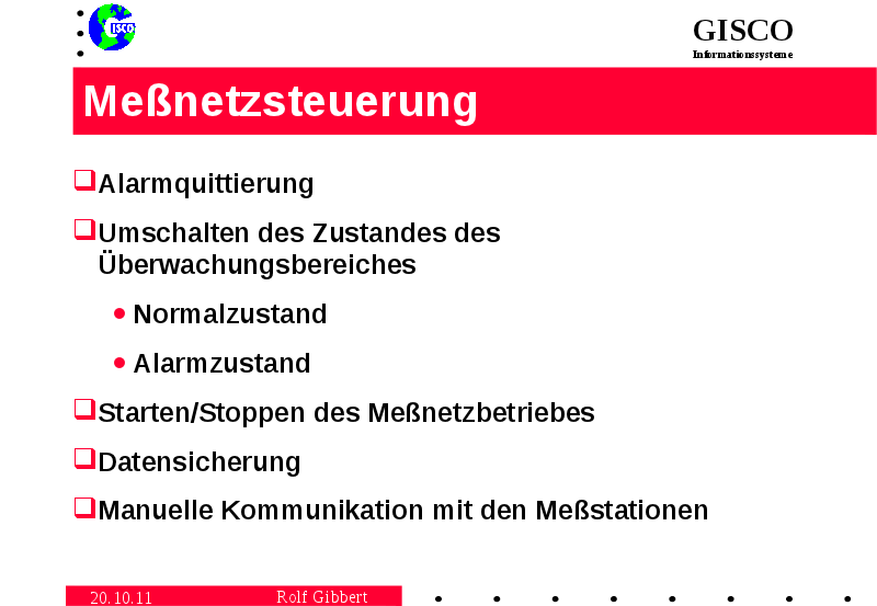 Unter Meßnetzsteuerung sind Dialogfunktionen zu verstehen, die den Betreibern zur Steuerung des Meßnetzes dienen. Mit ihnen sind manuelle Eingriffe in die Funktionsabläufe durchzuführen.